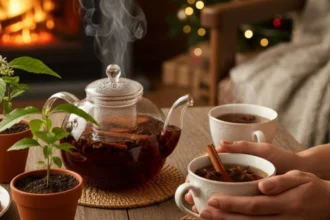 Plantas natalinas para chás que ajudam a relaxar nas festas de fim de ano com canela, anis-estrelado e cravo-da-índia